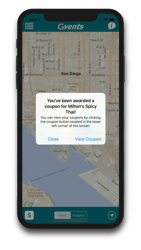 - Interactive map displays new events/offers as they become available.